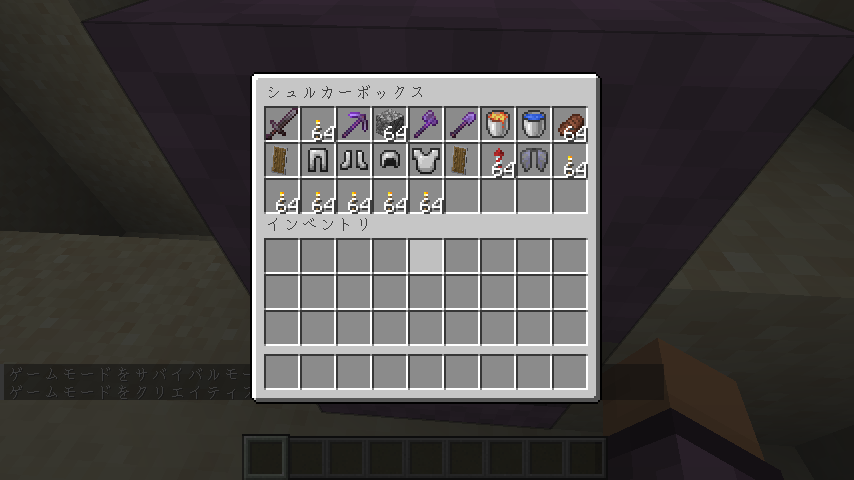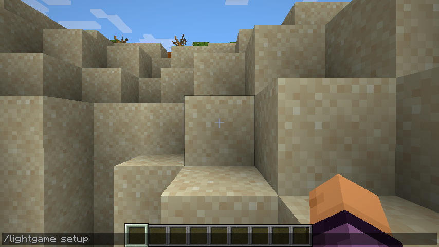 /lightgame kit で初期アイテムを調達します。並び順が気に入らないときは、各自変えた上でホットバーに保存してそこから呼び出す形にしてください: