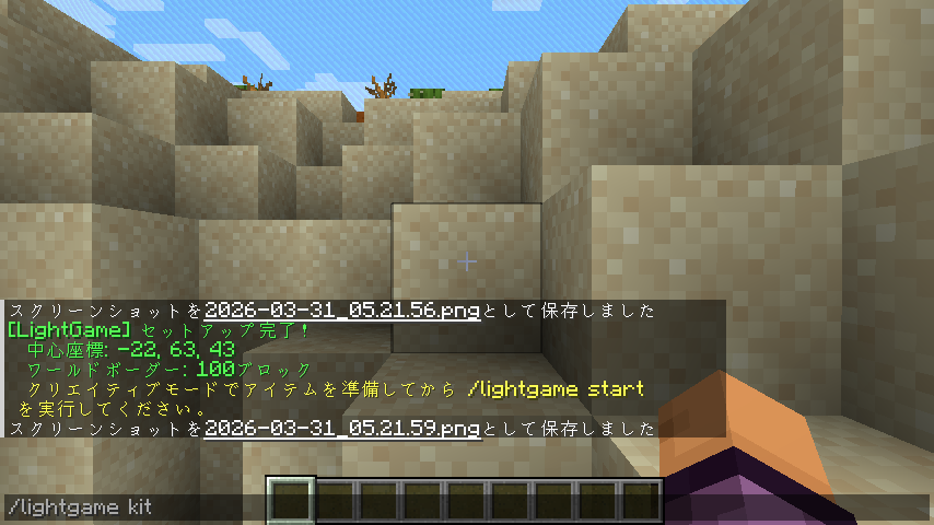ちなみに強制終了は /lightgame stop コマンドでも可能です。